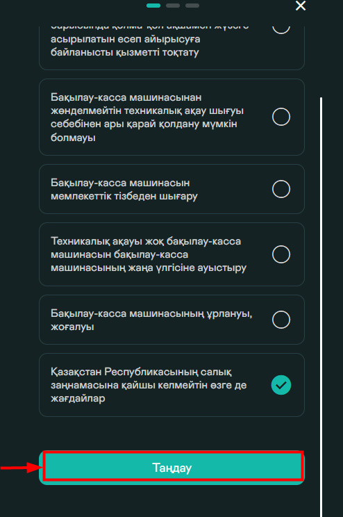 5. Алып тастау себебін таңдап,"таңдау" батырмасын басыңыз