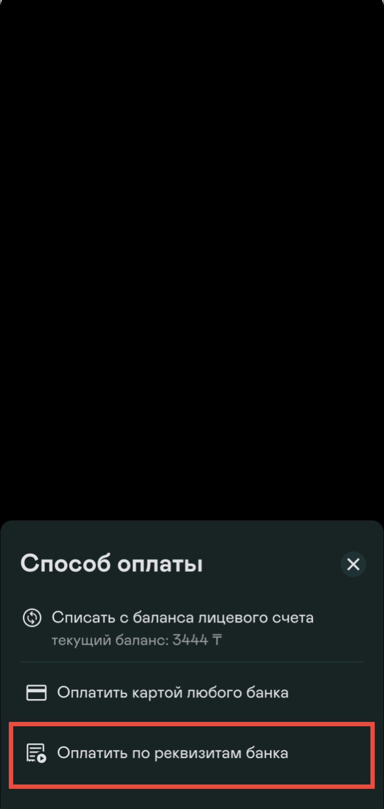 2. Далее выбирает "Оплатить по реквизитам банка" (Средства поступает на баланс счета от1-3 дней)