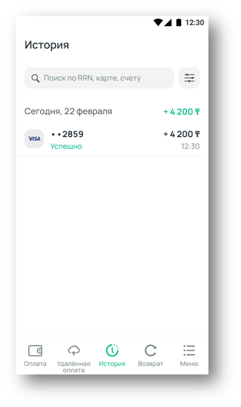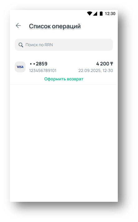 3. В истории отразится найденная операция. Необходимо выбрать операцию, по которой требуется оформить возврат