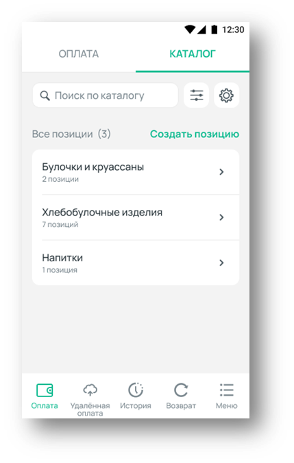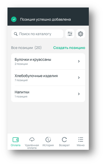 4. Пример каталога с заполненными «Категориями и позициями» при подключении существующей кассы