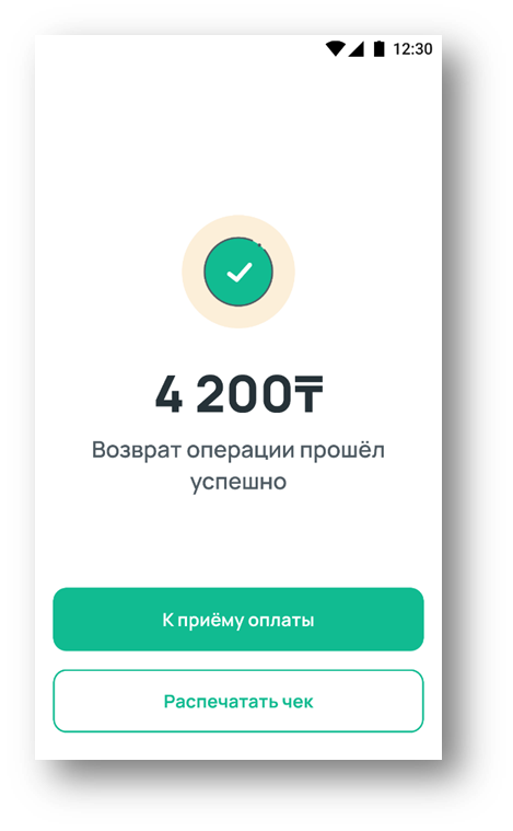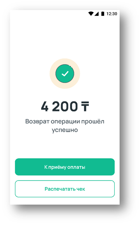 5. Такой экран при успешной оплате через POS другого банка или при оплате наличными. Распечатать чек можно посредством кнопки «Выдать чек»