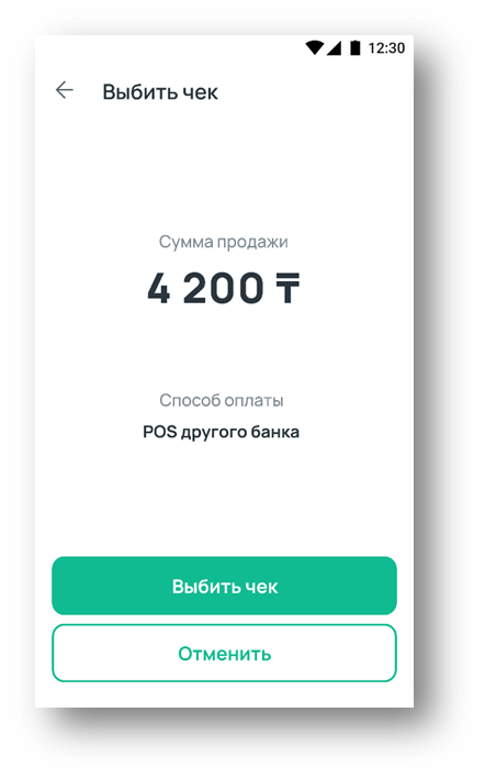 4. Вид экрана, когда тип оплаты через POS другого банка, далее нажмите «выбить чек»