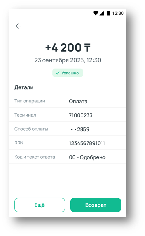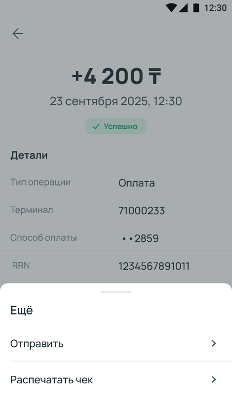 2. Для того что бы распечатать фискальный чек операции, нажмите «Ещё».