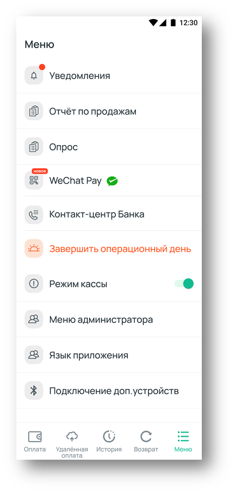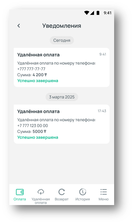 4. Статус операции можно проверить в разделе «Уведомления» в меню терминала