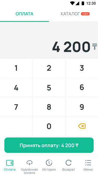 1. Набираем сумму покупки в поле ввода далее нажимаем «Принять оплату»