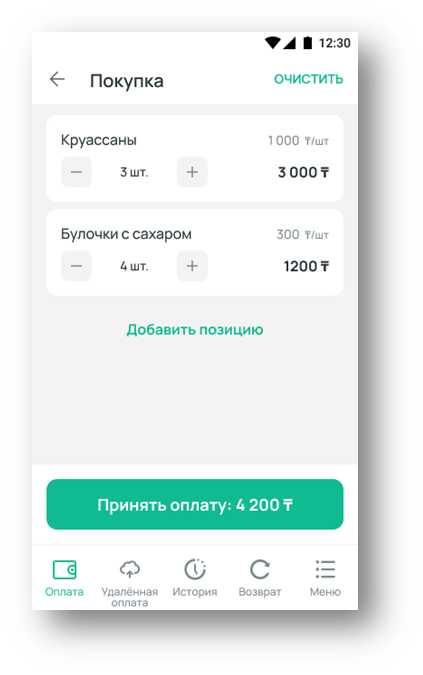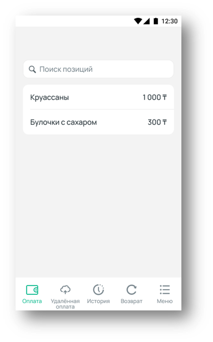 1. Главный экран POS терминала, после перехода в кассовый режим