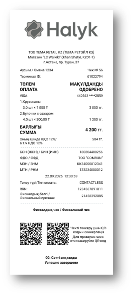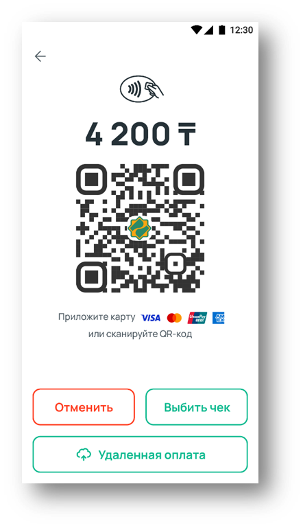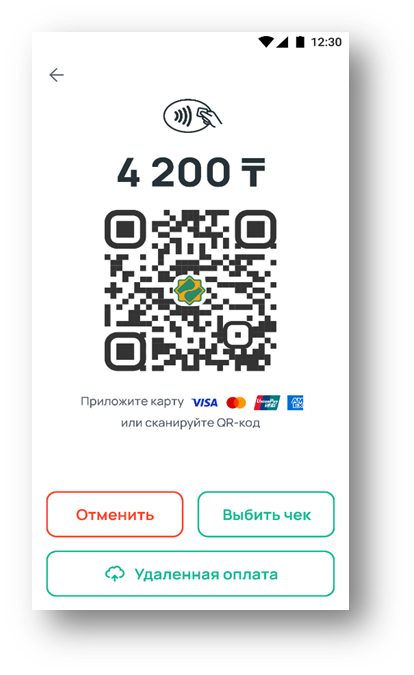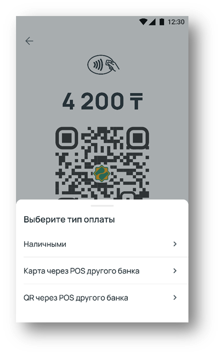 4. При оплате через POS терминал, покупатель прикладывает карту либо считывает QR.