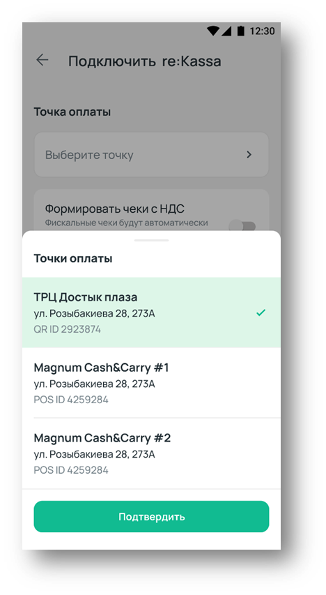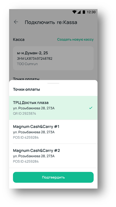 3. После выбора действующей кассы, необходимо подтвердить выбор точки оплаты POS