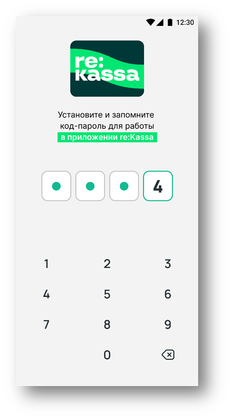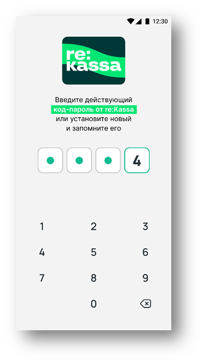 5. Далее, необходимо ввести код-пароль от кассы, либо можно переустановить его