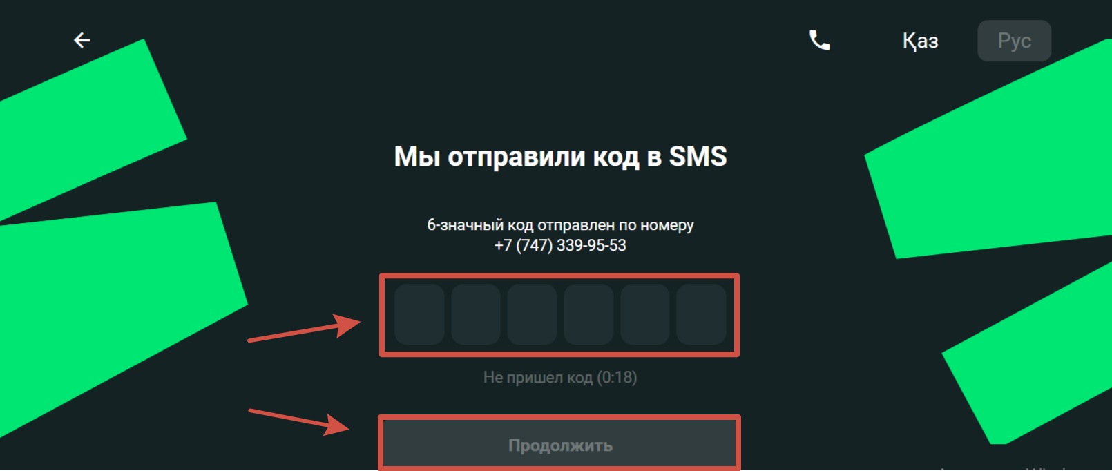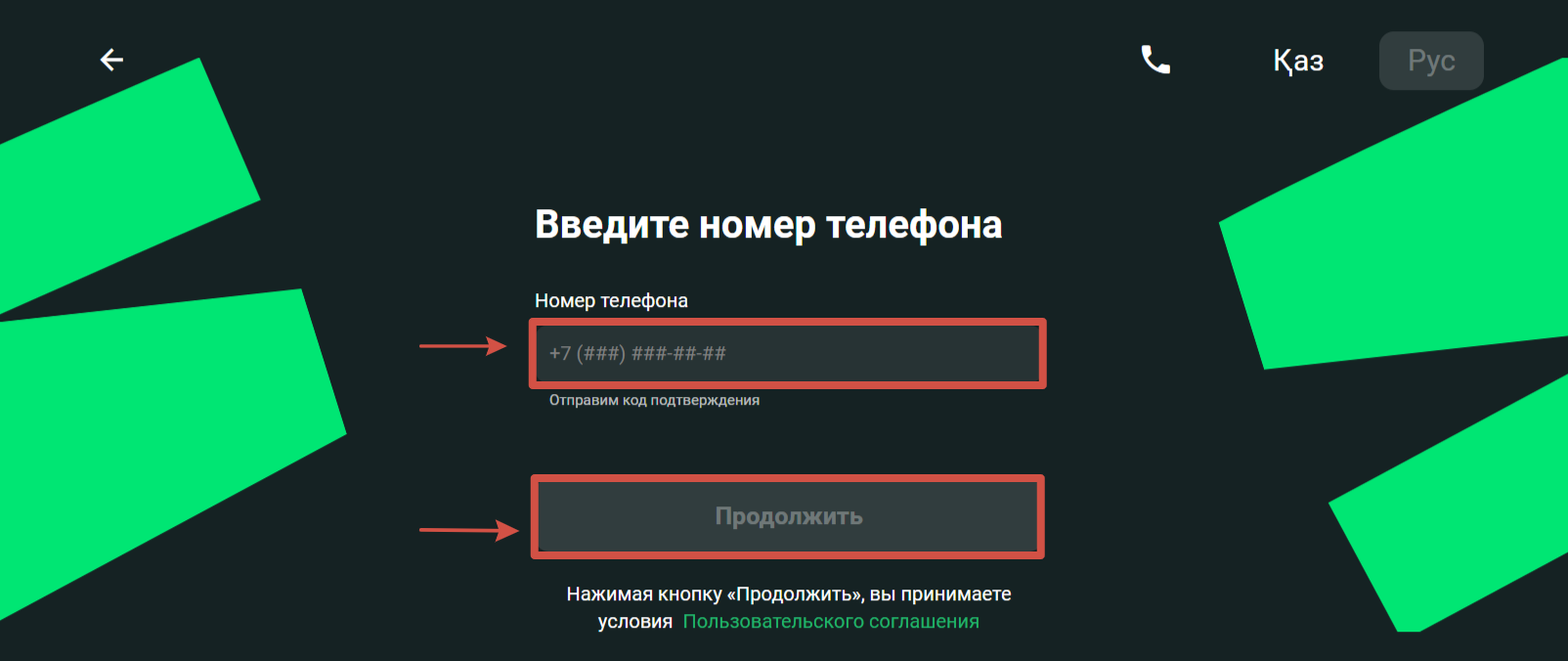 2. Введите номер телефона который указали при регистрации в "Onlinebank" и нажмите "Продолжить"