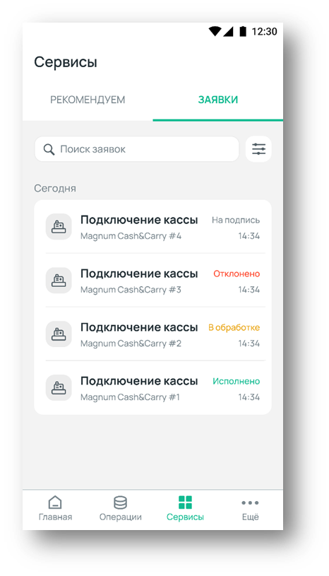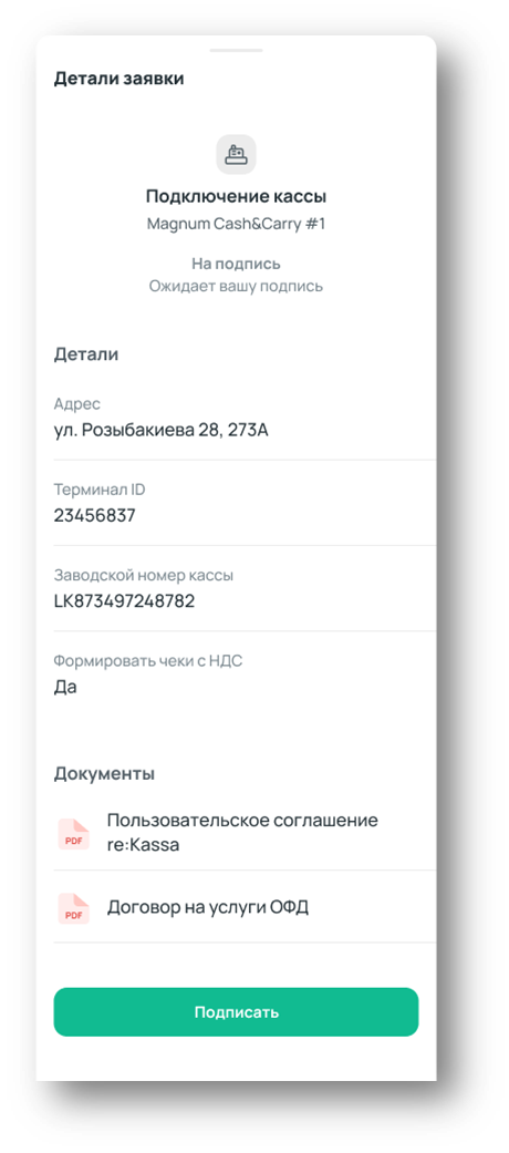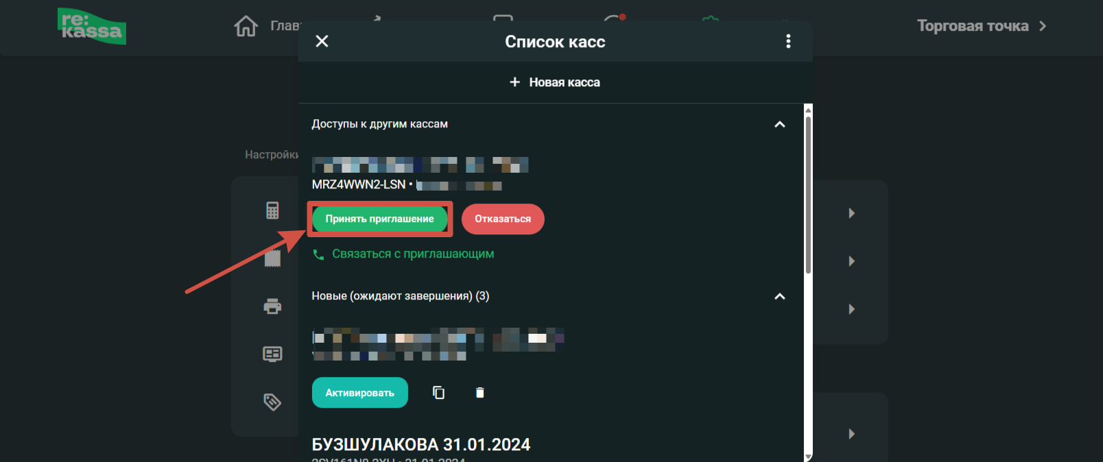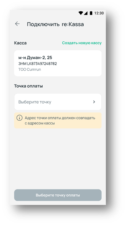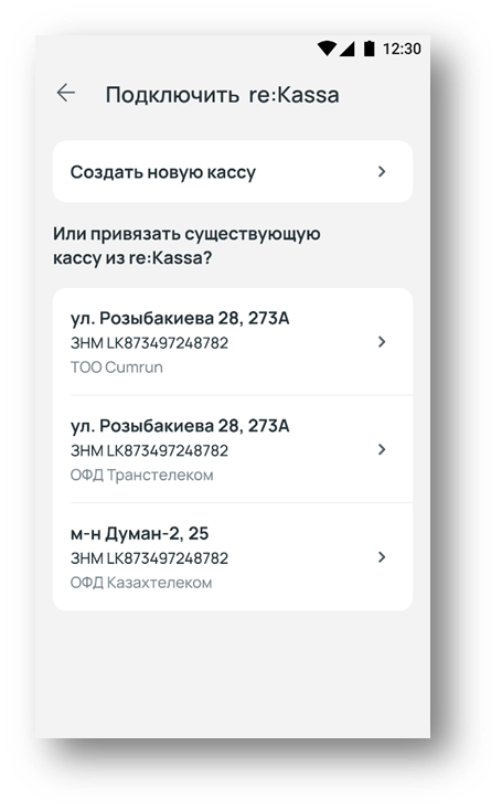 1. Если Клиент ранее пользовался Рекассой, то ему выводится перечень действующих касс. Клиент может подключить действующую кассу на POS