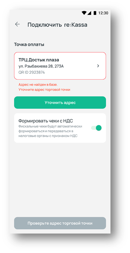 7. Далее, необходимо подтвердить адрес выбранной точки через справочник КГД, нажать на кнопку "Уточнить адрес"