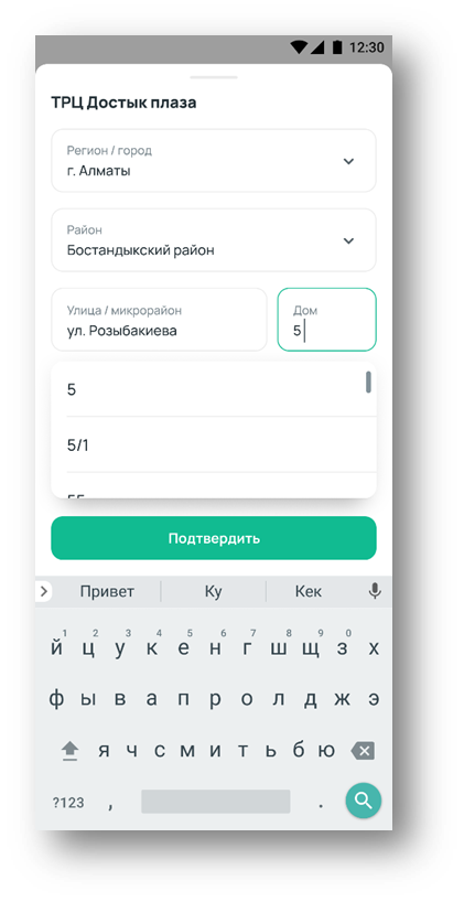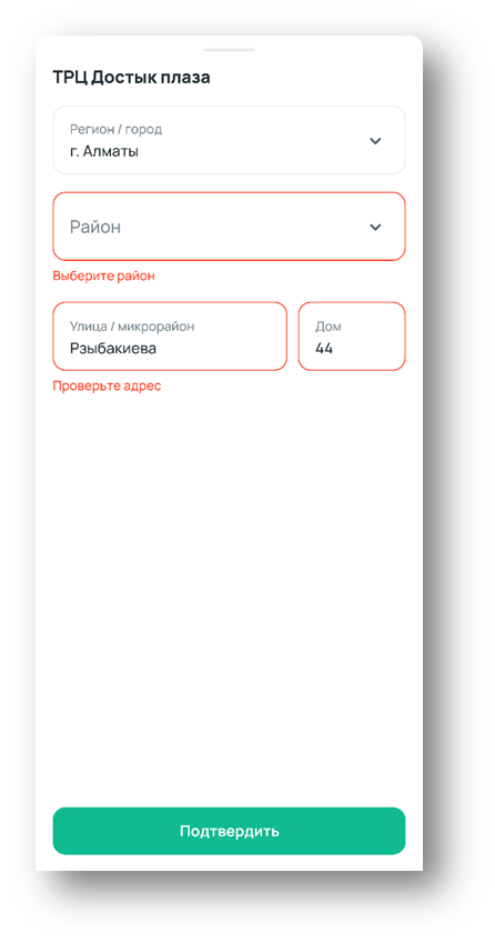 9. При подтверждении адреса точки, значения выбираем из выпадающего справочника