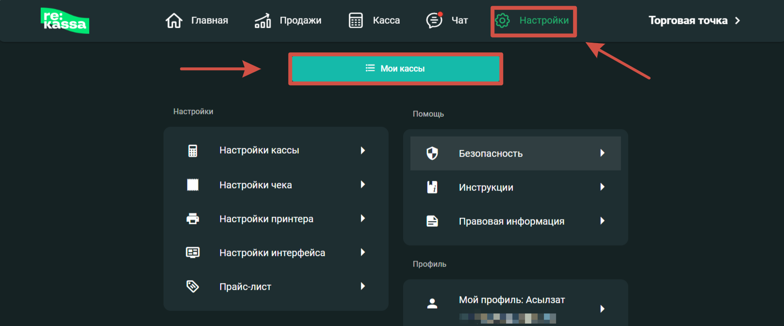 4. Перейдите в раздел "Настройки" и нажмите "Мои кассы"