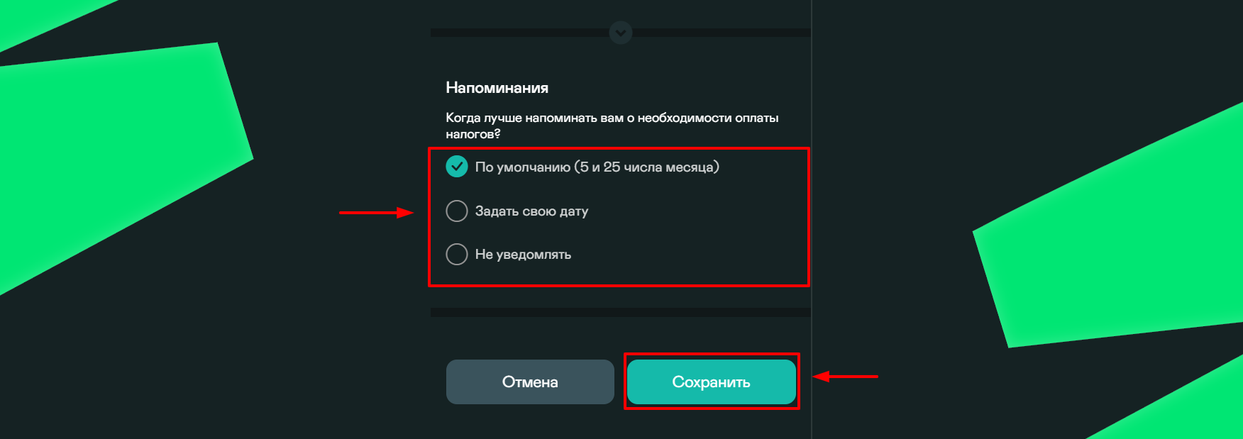Функция уведомлений позволяет клиентам вовремя получать информацию о необходимости оплаты налогов за себя как ИП, избегая пропуска обязательных платежей.