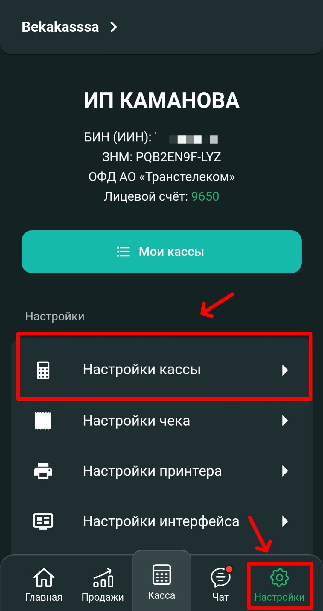 1. Зайдите в "Настройки"далее "Настройки кассы"
