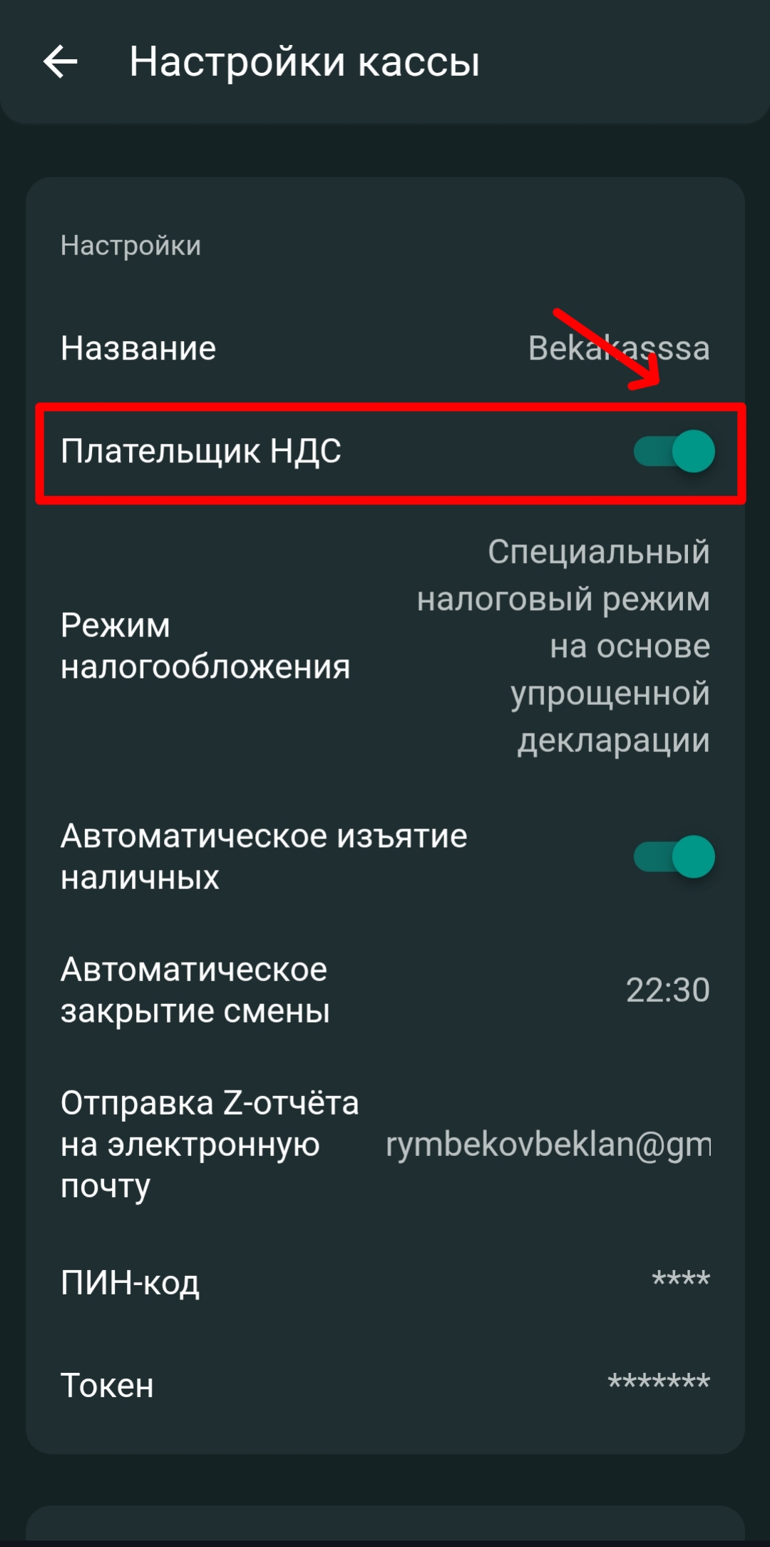 2. Передвиньте тумблер в строке "Плательщик НДС"