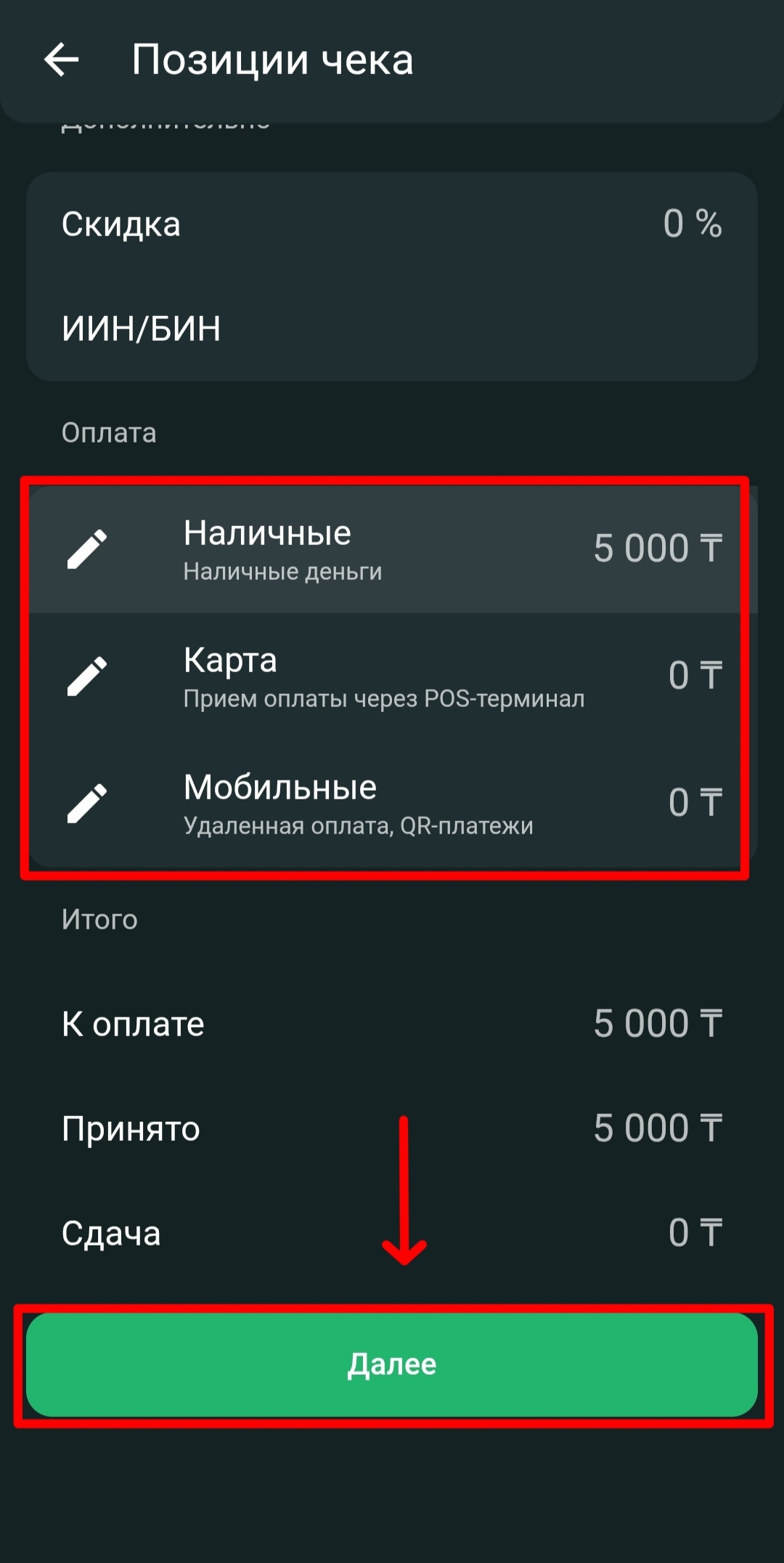 4. Выберите тип оплаты и нажмите "ДАЛЕЕ"