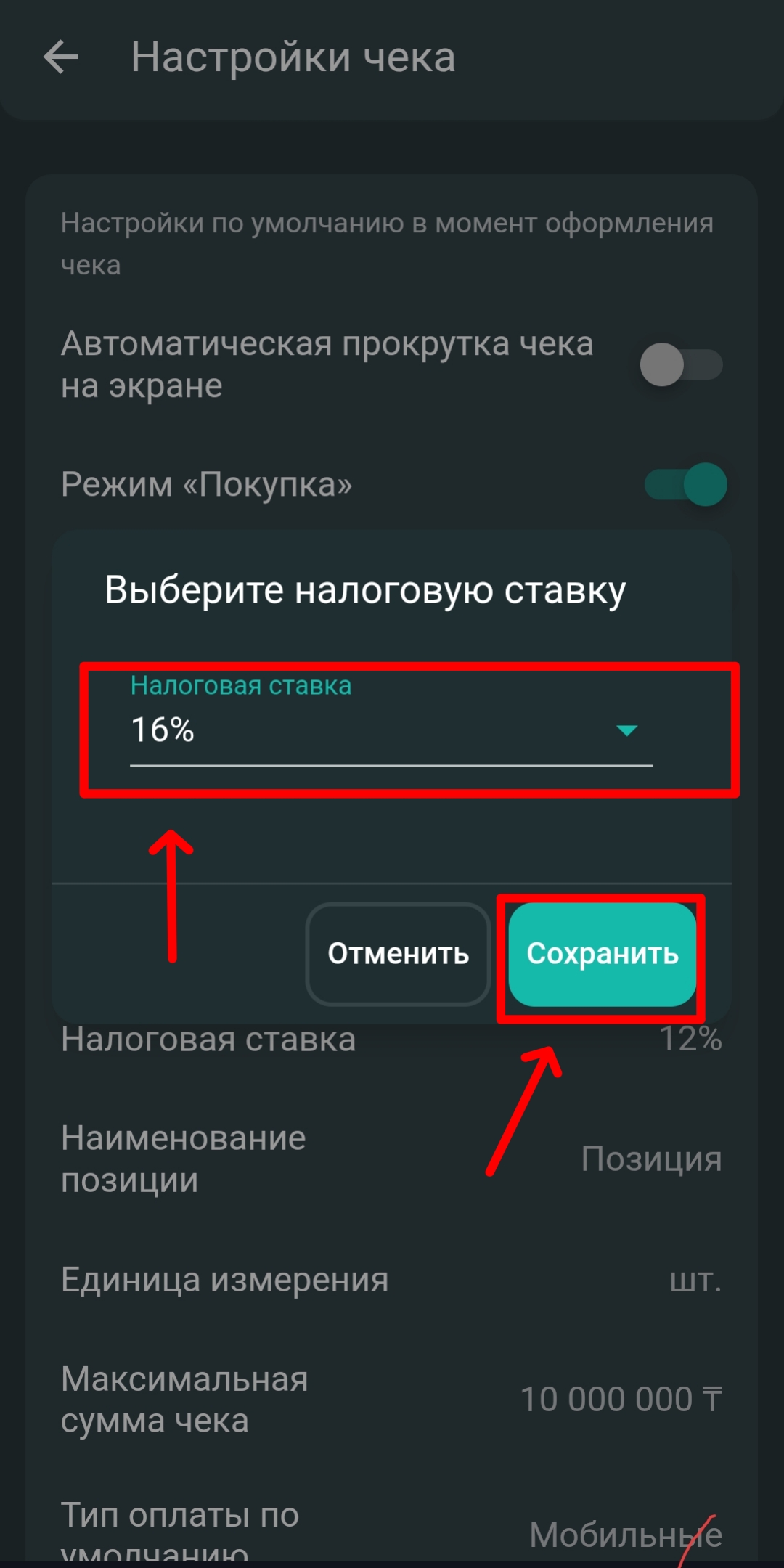 3. Выберите налоговую ставку и нажмите "СОХРАНИТЬ"
